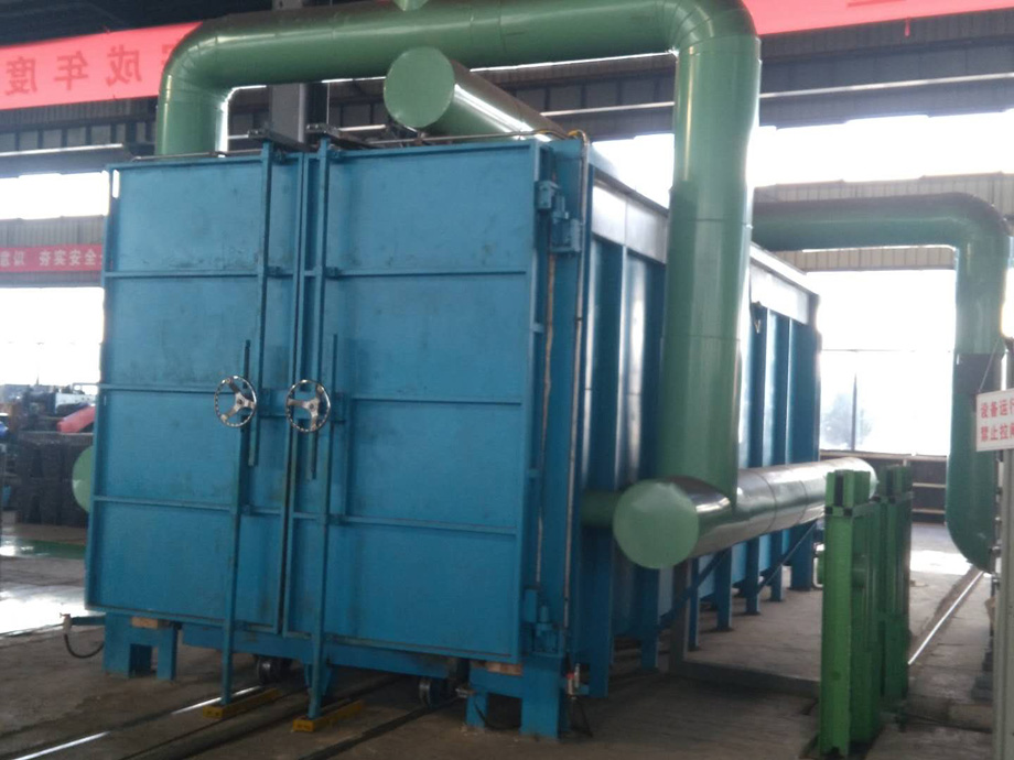 采用臺車式結(jié)構(gòu),加熱系統(tǒng)采用電加熱或燃?xì)饧訜幔ㄟ^特殊熱風(fēng)循環(huán)系統(tǒng),使?fàn)t內(nèi)熱空氣處于流動狀態(tài)并且具有排濕功能,加熱均勻性好。